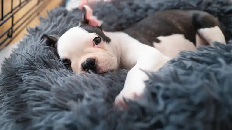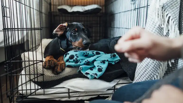 If your puppy hasn't yet started forming a positive bond with its crate, there are several things you can do to help foster those associations. They include adding blankets and dog beds to make the crate more physically comfortable, a favorite toy, and something that smells like you (as long as your dog won't chew it up). You can also adjust the location of the crate if it's near anything that's too loud, hot, cold, or unpleasantly smelly to your dog's nose.