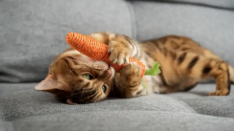 Cats and dogs have different ways of playing. Your kitty has natural hunting instincts that will see it stalking, pouncing, carrying its toys, and orchestrating the occasional attack on your toes under the sheet. On the other hand, pups want physical exercise, like roaming the great outdoors, going for a long walk, or a rousing game of fetch.